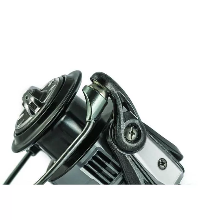 Fortschrittliches Bremssystem und Handhabung. Mikro-einstellbare Frontbremse mit überdimensionierten Bremsscheiben für eine präzise Bremskraftanpassung. Groß dimensionierter Power Bail Schnurführungsarm für leichteres Schnurverlegen. Anti-Twist-Titan-Schnurführungsrolle für problemloses Angeln. Ergonomisches Design. Aluminiumgriff mit Soft-Touch-Knopf für komfortable Nutzung.