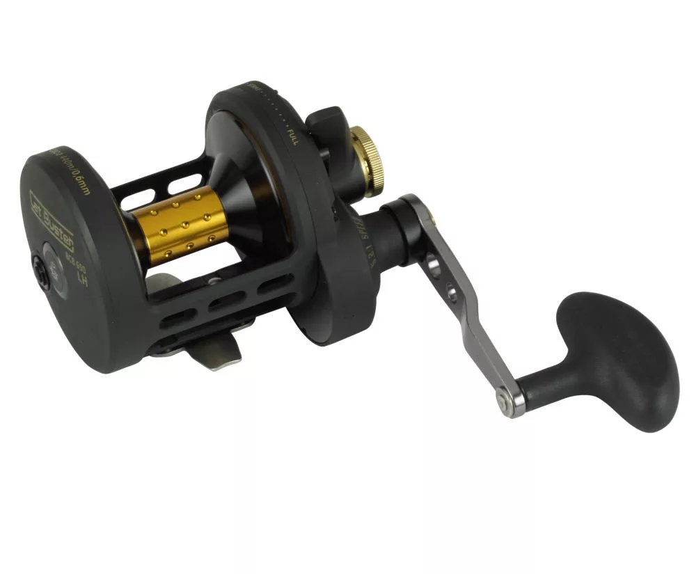 Viele Wallerangler bevorzugen Linkshandmodelle. Mit der Einführung der Buster 650 LH bietet Black Cat genau dieses Werkzeug! Die Buster LH basiert auf einem einteiligen Aluminiumgehäuse und hat ein Nettogewicht von nur 750 Gramm. Mit ihrer hohen Übersetzung von 5,2:1 holt sie 110 cm Schnur pro Kurbelumdrehung ein, was ein einfaches und schnelles Auswerfen über große Distanzen ermöglicht. Dadurch werden auch weit entfernte Hotspots leicht erreichbar. Das superstarke, fein einstellbare MegaDragTM Bremssystem verleiht der Rolle eine erstaunliche maximale Bremskraft von 16 Kilogramm, die jeden möglichen Gegner zum Stillstand bringt. Der große und ergonomische Handle Knob garantiert ein reibungsloses Angeln und macht die Ausrüstung auch im Kampf mit den größten Fischen beherrschbar. Bewusst wurde auf eine Schnurführung und den sogenannten T-Bar verzichtet. Dies führt zu einem perfekten Schnurlauf und ermöglicht es dem Angler, die Bremskraft manuell zu erhöhen. Dank der relativ schmalen, aber tiefen Spule verlegt sie die Schnur beim Köderführen perfekt.