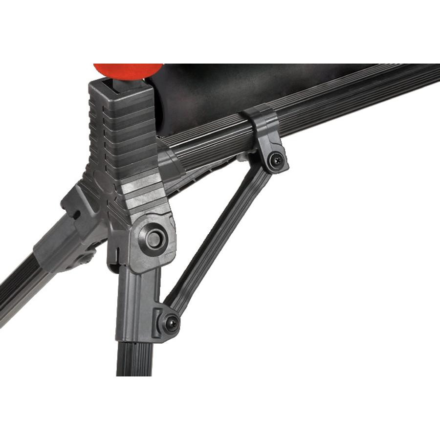 Ein besonders hochwertiger Rollenrutenhalter, der die Rute tatsächlich vor versehentlichem Herunterfallen schützt. Die Stabilität kann durch einen am zentralen Haken befestigten Wassereimer erhöht werden. In diesem Fall muss man selbst bei stärkstem Wind keine Angst haben, dass der Rutenhalter umfällt, was der darauf liegenden Rute schweren Schaden zufügen könnte. Die Arme an den Enden der Rolle neigen sich leicht nach innen, was die Sicherheit zusätzlich erhöht. So gibt es selbst bei einem stärkeren Windstoß keine Chance auf ein versehentliches Herunterfallen. Dank der Teleskopbeine ist ein stabiler Aufbau auch unter den unterschiedlichsten Geländebedingungen gewährleistet. Die schnelle Nutzung wird dadurch erleichtert, dass zwei Beine mit einer Bewegung gleichzeitig geöffnet und geschlossen werden können. Eine Tragetasche sorgt für die sichere Aufbewahrung und den Transport der Rolle bei Nichtgebrauch.