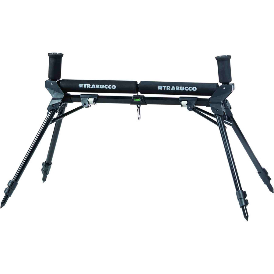 » Extreme Stabilität, auf jedem Gelände: Der robuste, schwarze Aluminiumrahmen und die 3-stufig verstellbaren Teleskopbeine garantieren einen felsenfesten Halt. Dank des speziellen „Flat“-Designs können Sie die Rolle auch flach auf dem Boden verwenden, was auch auf unebenem Gelände oder bei starkem Wind eine unvergleichliche Stabilität bietet. Die Rollenbreite von 64 cm bietet optimalen Platz für die Bewegung der Rute.