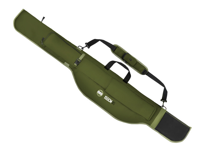An der Seite des Rutenfutterals befindet sich eine lange Reißverschlusstasche, die zum Transport eines Keschers oder Banksticks dient. Auf diese Tasche ist eine weitere Tasche mit Clip aufgenäht, die im Gegensatz zum PORTA nicht halbiert ist, wodurch sie größere Möglichkeiten bietet. Eine weitere interessante Besonderheit ist die Tasche am gepolsterten Teil des Schultergurts, in der Sie Bleie oder andere kleine Angelutensilien verstauen können. Der hochwertige Reißverschluss, bequeme Griffe oder der Schultergurt sind ebenfalls Teil des Rutenfutterals, das eine angenehme Einheit und ein praktisches Hilfsmittel bildet.