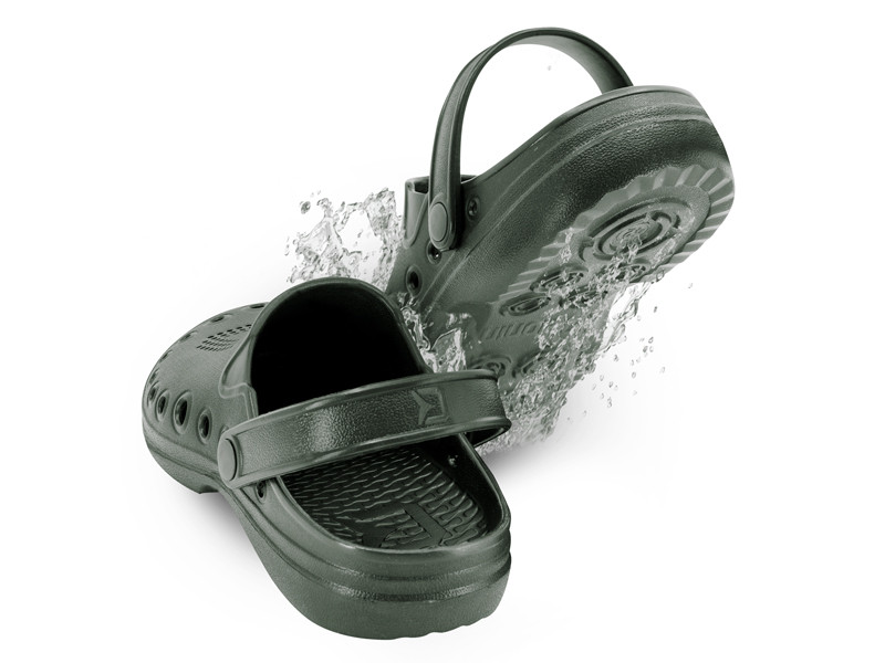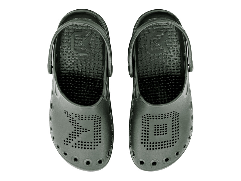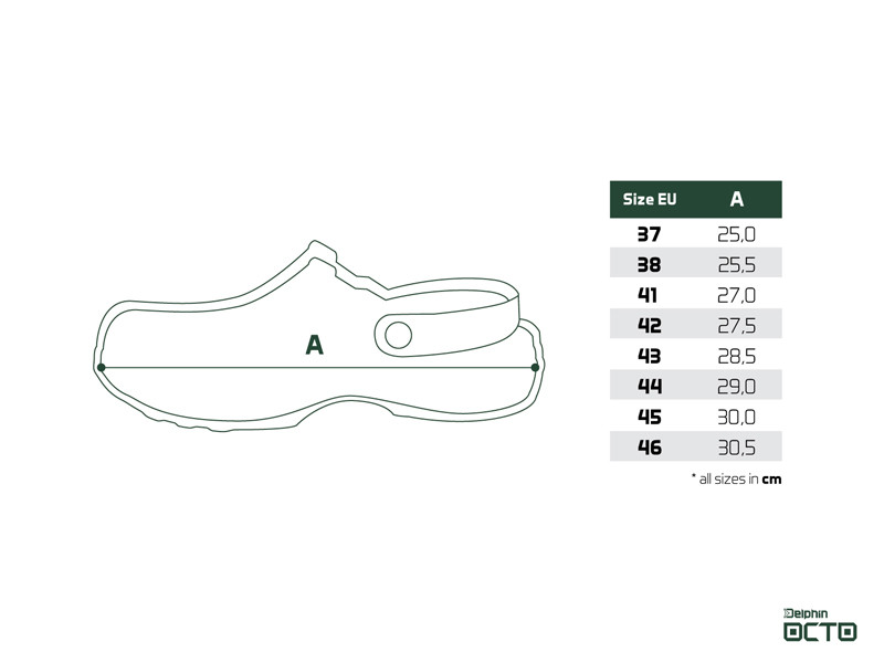 Die Geschichte der Herkunft des Namens OCTO ist äußerst interessant. Wir haben es mit der stilisierten Form von Krakenarmen entworfen, die unter allen Bedingungen hervorragenden Halt bieten. Der Oktopus heißt auf Englisch OCTOpus und auf Lateinisch OCTOpoda, diese beiden Wörter inspirierten das Design und die Benennung, die wir kurz als OCTO festgehalten haben. Ein weiteres raffiniertes Detail sind die großen seitlichen Öffnungen, die hauptsächlich der Belüftung dienen. Sie sind bewusst nicht auf Sohlenhöhe platziert, wie es normalerweise der Fall ist, sondern etwas höher. Dies ist wichtig, da es verhindert, dass Sand oder Kieselsteine einfach zwischen den Slipper und die Sohle gelangen, besonders wenn man sich am Ufer oder im seichten Wasser aufhält. So können Sie Ihre Füße maximal geschützt fühlen. Darüber hinaus trägt die dichte Perforation im unteren Bereich ebenfalls zur Belüftung bei. Auf der einen Seite haben wir das D-Symbol aus dem Delphin-Logo verwendet, auf der anderen Seite den Buchstaben O, der der Anfangsbuchstabe des Namens OCTO ist. Die feine Textur auf der Sohlenoberfläche, die an die Haut eines Tintenfisches erinnert, verstärkt den Gesamteindruck zusätzlich. Dank des EVA-Materials sind die Slipper extrem leicht, strapazierfähig und schwimmfähig. Selbstverständlich gehört zu diesem Modell auch ein Fersenriemen, der hilft, den Fuß zu fixieren, insbesondere bei der Verwendung auf unebenem oder abschüssigem Gelände.
