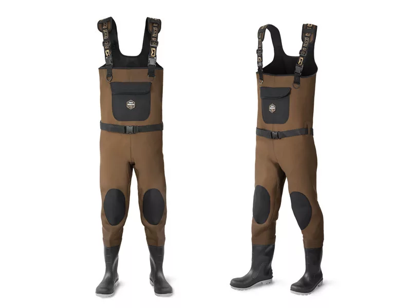 Dank ihrer braunen Farbe sind Fischschleim und andere Flecken auf ihrer Oberfläche nicht so sichtbar. In der klassischen Neopren-Tasche vorne können kleine Dinge wie unsere Angelerlaubnis aufbewahrt werden. Auch das Knien ist kein Problem, da die Stiefel im Kniebereich mit einer doppelten Neoprenschicht verstärkt sind. Die verstellbaren Schultergurte sind für mehr Komfort beim ganztägigen Angeln mit Neopren gepolstert. Unter den Schultergurten befinden sich zwei Kunststoffringe, an denen verschiedene Accessoires wie Maßband oder Zange an elastischen Bändern befestigt werden können. Das Paket enthält auch einen Wathosengürtel, der verhindert, dass Wasser in die Stiefel gelangt, falls Sie ausrutschen oder fallen. Der Stiefelbereich hat eine strapazierfähige und stabile Sohle, die selbst den härtesten Bedingungen standhält. Sie sind mit Neopren-Einlegesohlen gefüttert, um unsere Füße besser vor Kälte zu schützen.