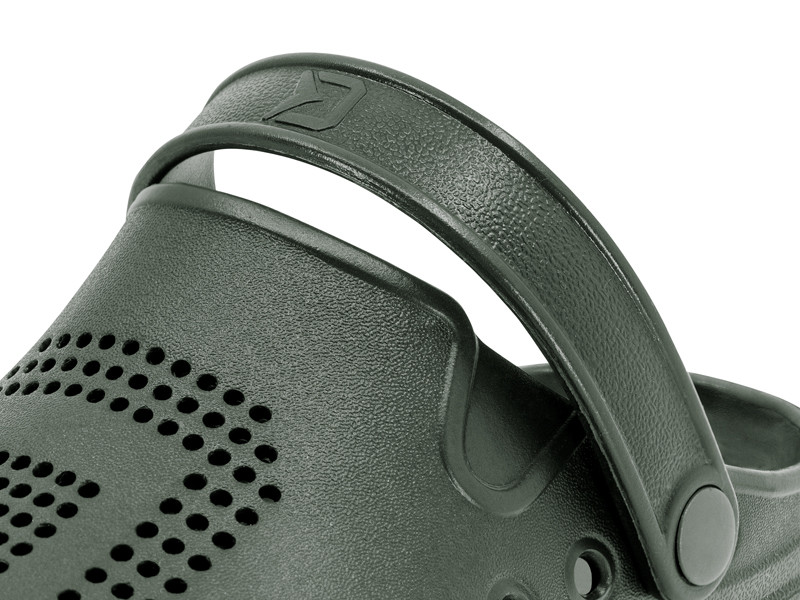 Die Geschichte der Herkunft des Namens OCTO ist äußerst interessant. Wir haben es mit der stilisierten Form von Krakenarmen entworfen, die unter allen Bedingungen hervorragenden Halt bieten. Der Oktopus heißt auf Englisch OCTOpus und auf Lateinisch OCTOpoda, diese beiden Wörter inspirierten das Design und die Benennung, die wir kurz als OCTO festgehalten haben. Ein weiteres raffiniertes Detail sind die großen seitlichen Öffnungen, die hauptsächlich der Belüftung dienen. Sie sind bewusst nicht auf Sohlenhöhe platziert, wie es normalerweise der Fall ist, sondern etwas höher. Dies ist wichtig, da es verhindert, dass Sand oder Kieselsteine einfach zwischen den Slipper und die Sohle gelangen, besonders wenn man sich am Ufer oder im seichten Wasser aufhält. So können Sie Ihre Füße maximal geschützt fühlen. Darüber hinaus trägt die dichte Perforation im unteren Bereich ebenfalls zur Belüftung bei. Auf der einen Seite haben wir das D-Symbol aus dem Delphin-Logo verwendet, auf der anderen Seite den Buchstaben O, der der Anfangsbuchstabe des Namens OCTO ist. Die feine Textur auf der Sohlenoberfläche, die an die Haut eines Tintenfisches erinnert, verstärkt den Gesamteindruck zusätzlich. Dank des EVA-Materials sind die Slipper extrem leicht, strapazierfähig und schwimmfähig. Selbstverständlich gehört zu diesem Modell auch ein Fersenriemen, der hilft, den Fuß zu fixieren, insbesondere bei der Verwendung auf unebenem oder abschüssigem Gelände.