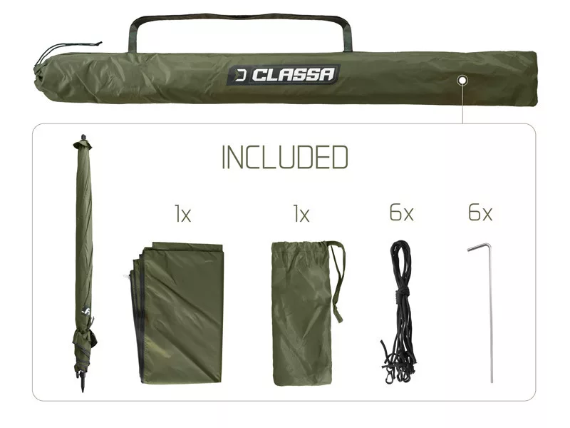 Inhalt der Packung: 1 St. Delphin CLASSA Schirm mit Seitenwand, mit Heringen.