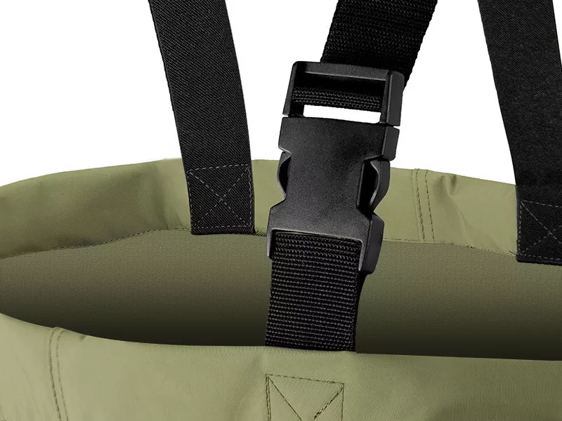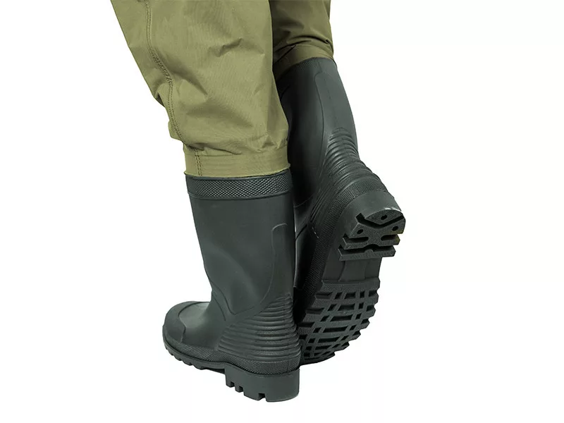 Sie zeichnet sich durch hervorragende Eigenschaften und gut durchdachte Details aus, wie z.B. exzellente Nähte und Materialverbindungen. Das ausgewählte Material besticht durch sein außergewöhnlich geringes Gewicht, seine Flexibilität und absolute Wasserbeständigkeit. Dank dieser Parameter fühlen Sie sich in der CLASSA Wathose auch bei erhöhter Aktivität wohl. Neben den herkömmlichen verstellbaren Schultergurten verfügt dieses Modell auch über einen abnehmbaren Gürtel, der eine noch bessere Anpassung an die Körperform des Anglers ermöglicht. Ein weiterer großer Vorteil des gespannten Gürtels ist, dass er im Falle eines versehentlichen Sturzes ins Wasser verhindert, dass Wasser schnell in die Wathose gelangt. Die Gummistiefel mit strapazierfähiger und stabiler Sohle ermöglichen bequemes Waten unter verschiedenen Bedingungen. Die Sohle der Stiefel ist aus dickem und strapazierfähigem Gummi gefertigt, das hervorragenden Halt auf allen Oberflächen bietet. Das rutschfeste Design erhöht die Sicherheit, besonders unter nassen oder schlammigen Bedingungen. Die Stiefel verfügen auch über eine Fersenverstärkung zum leichteren Ausziehen.