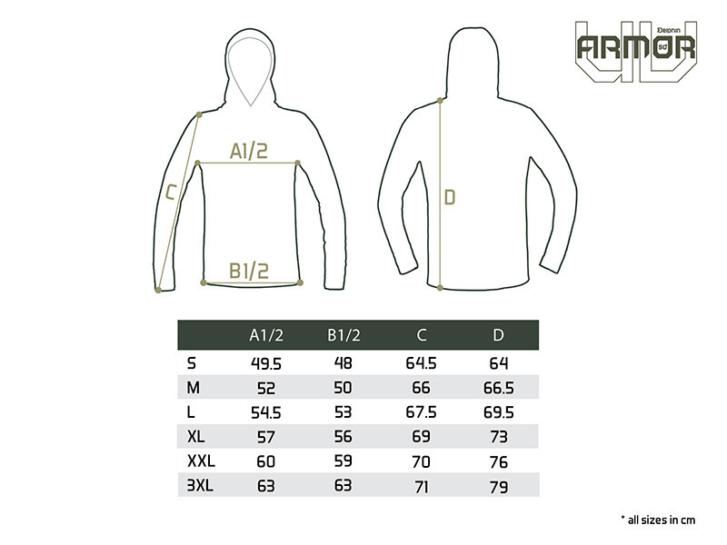 Delphin UV Armor 50+ Olive Kapuzen-Langarmshirt L detaillierte Beschreibung