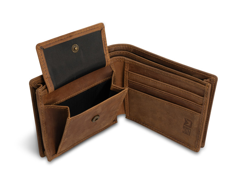 Die Geldbörse ist aus echtem dunkelbraunem Leder gefertigt, um eine höhere Strapazierfähigkeit und ein angenehmes Gefühl zu gewährleisten.