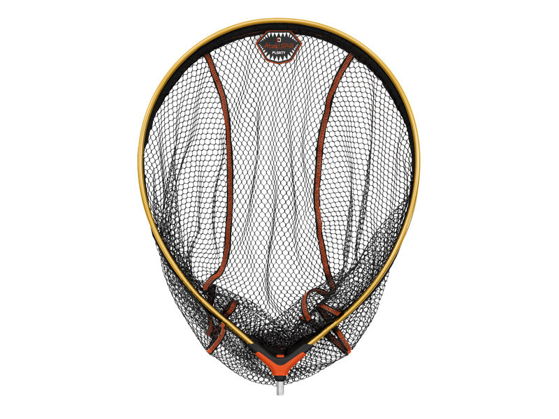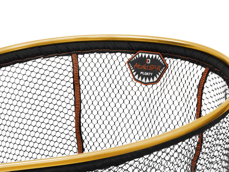 Der Delphin ATAK! SP-R FLOATY Kescherkopf wurde entwickelt, um in jeder Situation die beste Leistung zu erbringen. Das schwarze, gummierte Netz wurde mit orangefarbenen Nähten verstärkt, was nicht nur die Haltbarkeit erhöht, sondern auch das Aussehen besonders macht. Das Netz ist in einem leichten, aber sehr starken orangefarbenen Aluminiumrahmen befestigt, der selbst den härtesten Herausforderungen standhält.
