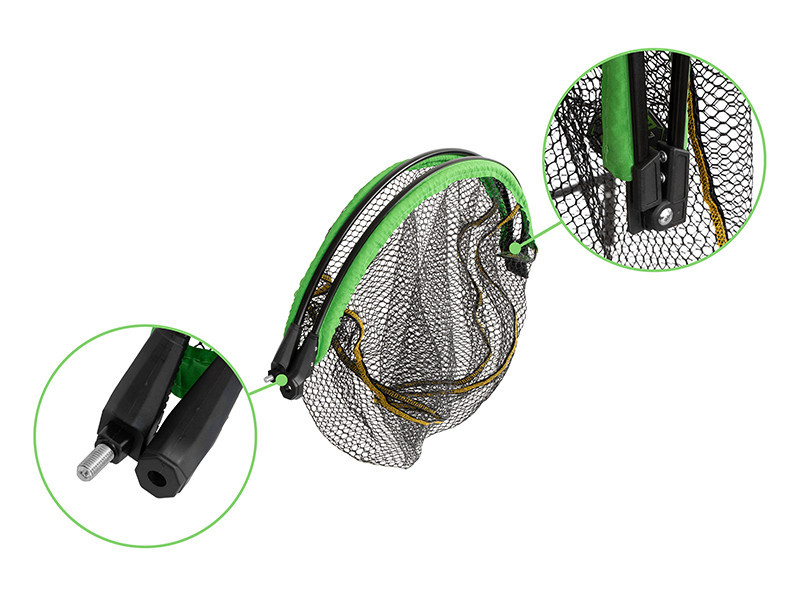 Das einzigartige schwimmende Design ermöglicht es Ihnen, das Netz im Wasser zu lassen, während Sie den Fisch drillen. So haben Sie mehr Zeit, den Fang sicher zu landen, und vermeiden, dass das Netz verloren geht oder sinkt. Das Design des Kescherkopfs harmoniert perfekt mit dem grünen und schwarzen Farbschema der Reaxe Feeder-Serie und ergänzt so Ihre Angelausrüstung stilvoll.