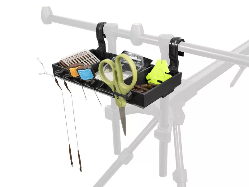 Die Ablage eignet sich zur Aufbewahrung kleiner Zubehörteile oder Köder. Das bedeutet, dass diese kleinen Rig-Elemente immer in Ihrer Nähe sind, direkt neben den ausgeworfenen Ruten.
