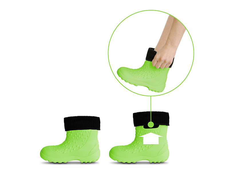 Praktische Aussparungen am oberen Teil der Stiefel erleichtern das An- und Ausziehen, was besonders wichtig für Kinder ist, damit sie die Stiefel schnell und einfach benutzen können. Die rutschfeste Sohle bietet hervorragenden Halt auf nassem, rutschigem oder unebenem Gelände und reduziert so die Sturzgefahr. Diese Eigenschaft ist besonders wichtig am Wasser, wo der Boden oft rutschig und schlammig ist.