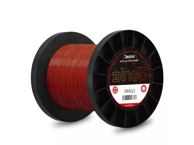 Monofile Karpfenangelschnur in charakteristischer, leuchtend roter Farbe. Die Bingo-Schnur zeichnet sich durch hohe Knotenfestigkeit, geringe Dehnung und eine extrem glatte, strapazierfähige Oberfläche aus, die selbst die anspruchsvollsten Angler beeindruckt.