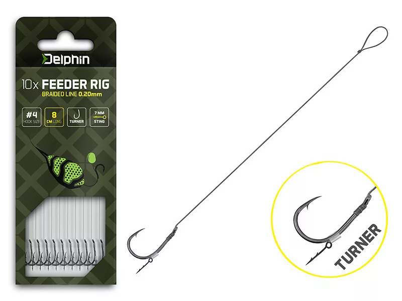 Paketinhalt:Delphin Braided Sting Feeder Rig 12cm Geflochten Vorgebunden 6 Turner Haken 10Stk