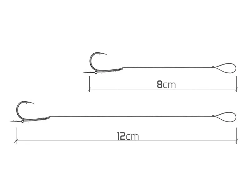 Was die technischen Parameter des Produkts betrifft, so handelt es sich um ein 12 Zentimeter langes Vorfach aus weicher und feiner geflochtener Schnur, an dem sich ein Turner-Haken der Größe 6 befindet. Die Verpackung enthält 10 komplett montierte Einheiten, von denen jede mit einem robusten Köder-Pin ausgestattet ist. Dieses Design ermöglicht die schnelle und sichere Präsentation verschiedener Ködertypen, wie z.B. Pop-Up Boilies, Wafter oder kleinere Pellets, ohne dass komplizierte Einfädeltechniken erforderlich sind.