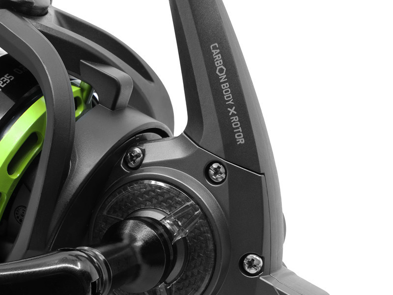 Sie ist mit einer hohen konischen Spule und Spulenkante ausgestattet, was die Wurfweite erheblich erhöht. Die flache Metallspule fasst ausreichend Schnur. Das Carbongehäuse und der Rotor machen die Rolle trotz ihrer Größe leicht. Eine Schutzlösung unter der Spule verhindert das Einziehen der Schnur.