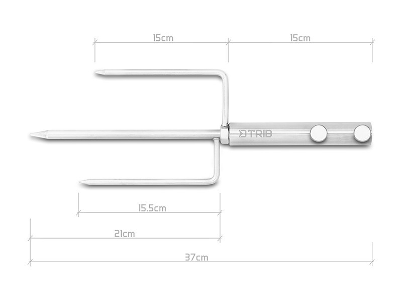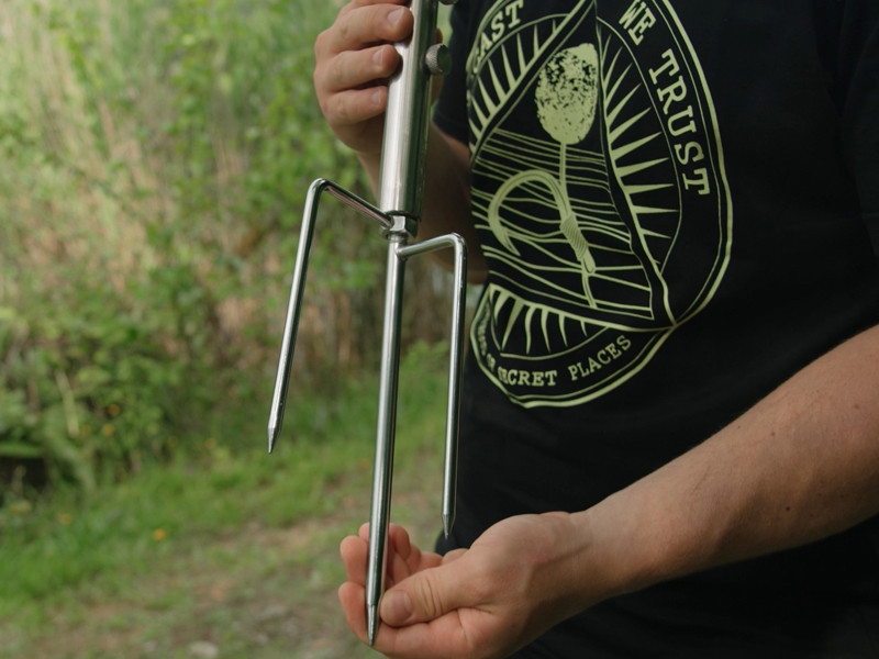 Die drei Einschraubspitzen unterschiedlicher Länge sorgen für hervorragende Stabilität, sodass er auch bei starkem Wind, auf weichem oder hartem Boden sicher verwendet werden kann. Die Position der Spitzen kann an die Geländebedingungen angepasst werden, und eine davon ist zusätzlich mit einer Befestigungsmutter versehen, mit deren Hilfe sie leicht eingestellt oder entfernt werden kann. Das Design ist praktisch und robust: Dank der 6 cm breiten Fußtrittfläche lässt sich der Halter einfach ohne separates Werkzeug in den Boden drücken.
