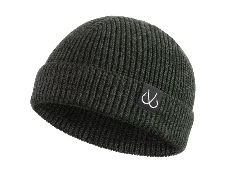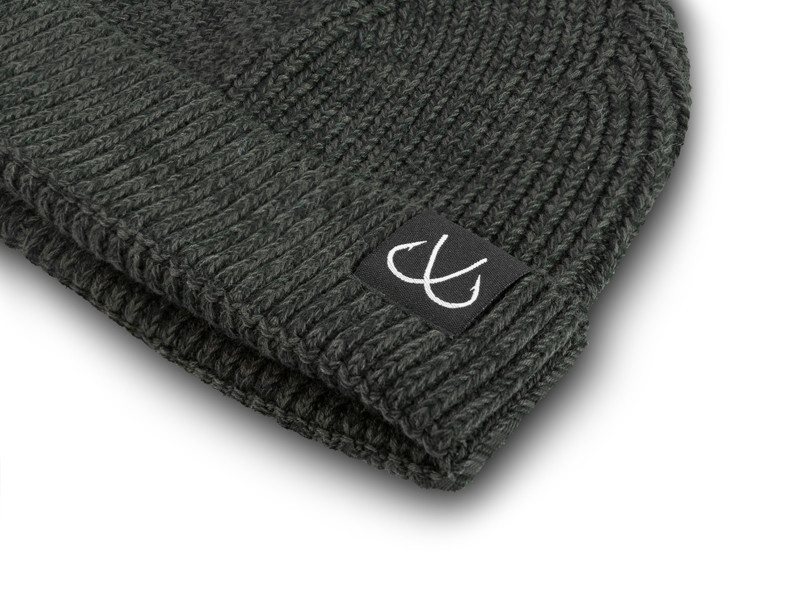 Der Schnitt der Mütze endet mit einem Umschlag, der über die Ohren reicht, was nicht nur praktisch, sondern auch ästhetisch ist. Das gerippte Strickmuster verleiht ein modernes Aussehen, während das dezente Logo mit zwei gekreuzten Haken auf der Vorderseite subtil auf die Welt des Angelns hinweist. Dieses zurückhaltende Design ermöglicht es, dass die Mütze nicht nur am Wasser, sondern auch in städtischer Umgebung gut aussieht.