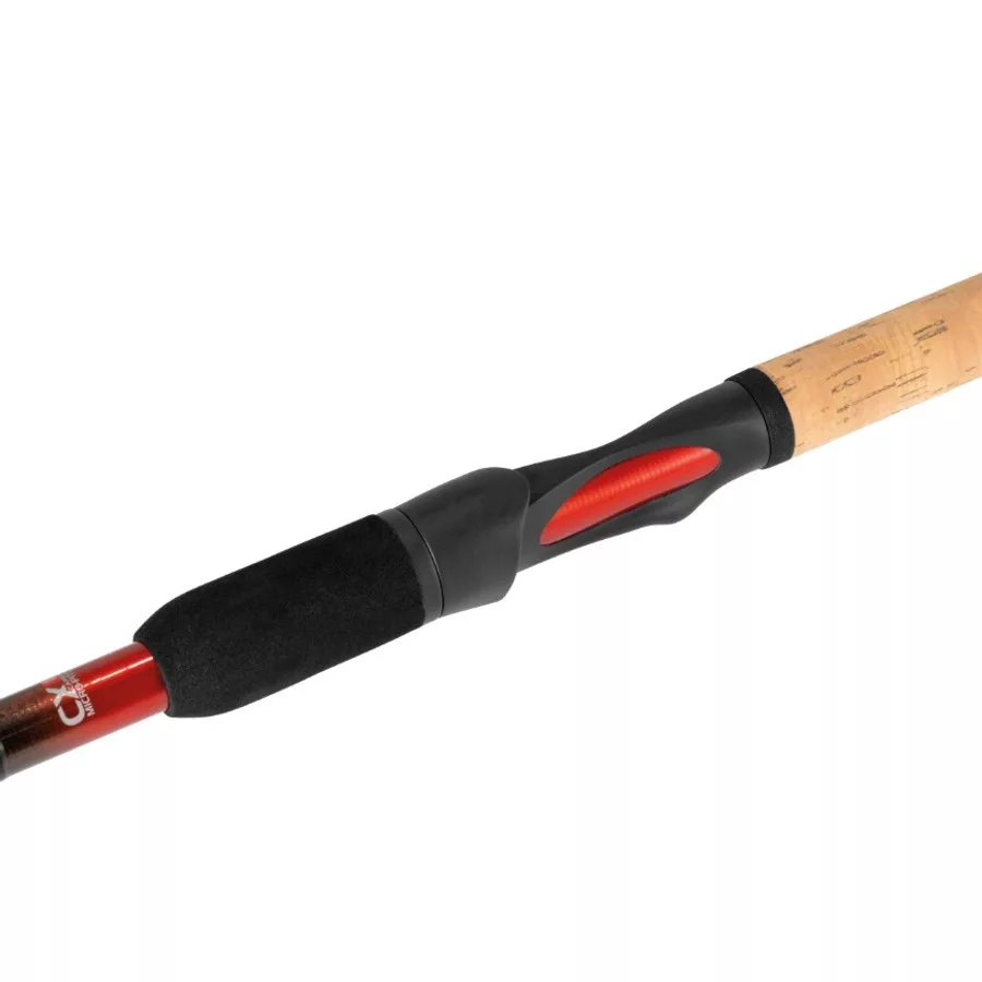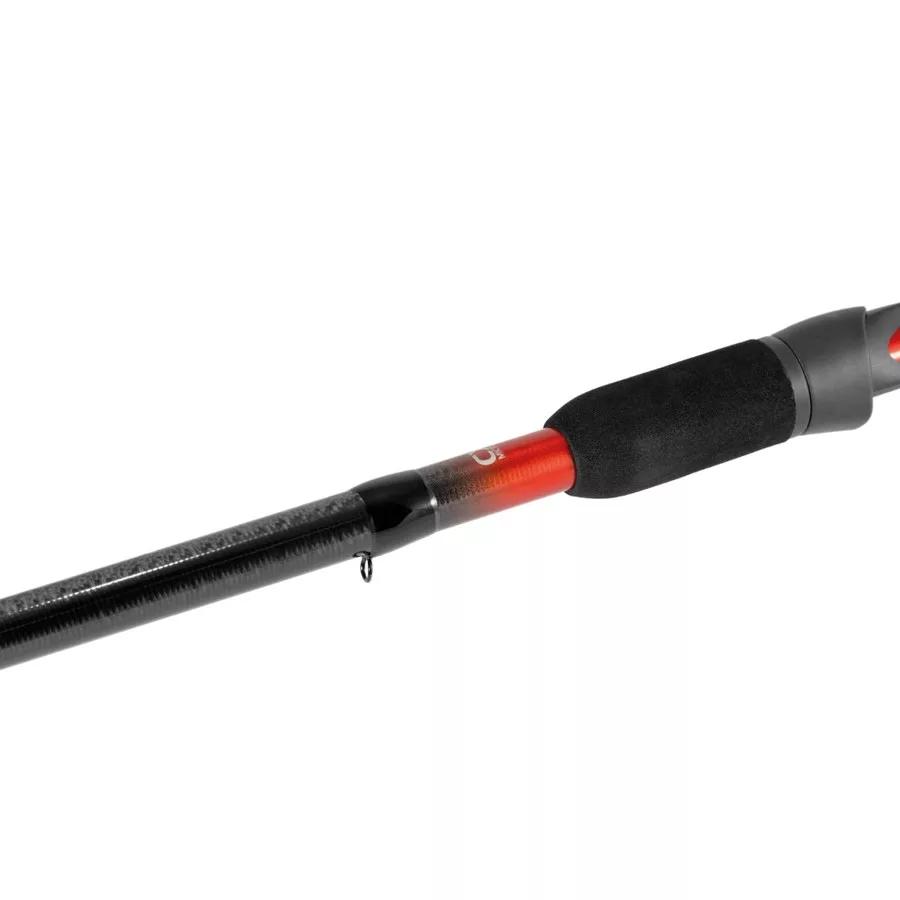 Feeder Rute aus High Modulus CX1 Micro Pitch Carbon mit X-Joint Technologie und perfekter Parabolik. Dank der angewendeten Technologie verdreht sich der Blank unter Belastung nicht, was sich auch positiv auf die Wurfgenauigkeit auswirkt. Dank ihrer Medium Power können wir damit auch große Fische (Karpfen, Amur, Barbe) erfolgreich bekämpfen.
