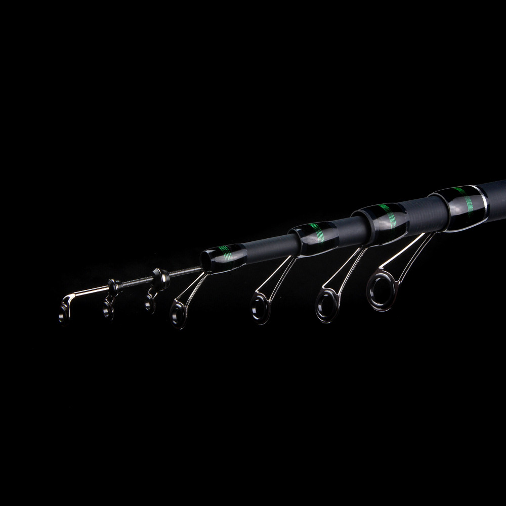 Der untere Teil der Rute ist extrem steif, während der mittlere und obere Teil flexibel und sensibel in der Aktion sind. Diese kombinierte Aktion ermöglicht im Vergleich zu Telematch-Ruten sehr weite Würfe, wobei die Rute gleichzeitig ausreichend fein geblieben ist.