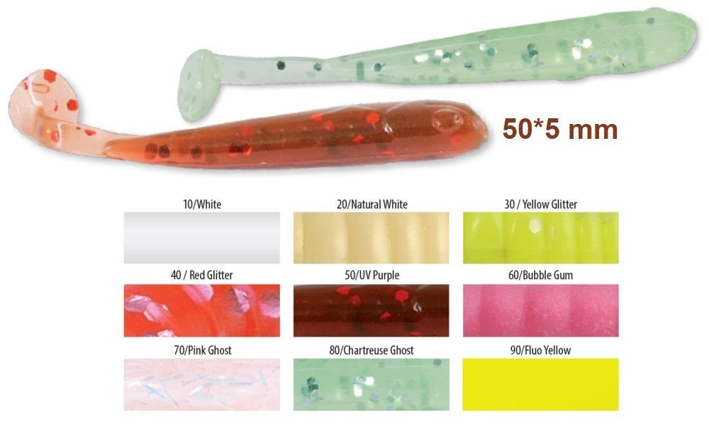 Trabucco Slurp Bait T-Shad Yellow Glitter Kunstköder aus Kunststoff 10 Stück