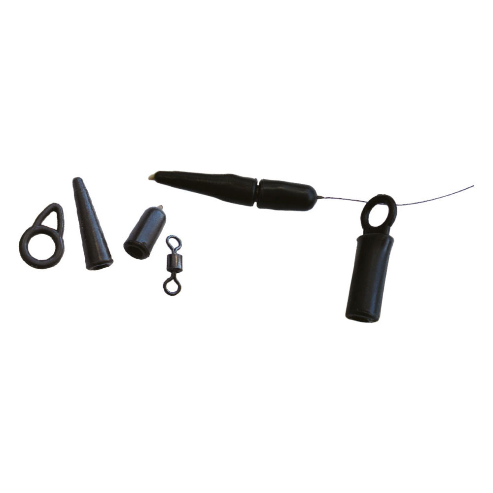 Das Paket enthält Zubehör aus hochwertigen, verschleißfesten Materialien: 3 Schutzrohre, einen Gleitring, einen Wirbel, einen Wirbelschutz, einen Gummikonus und eine Gummiglocke – alles, was für eine präzise funktionierende, feinfühlige Montage benötigt wird. Diese Elemente passen perfekt zusammen und ermöglichen eine freie Bewegung des Bleis auf der Hauptschnur, wodurch gewährleistet wird, dass die Bewegung nach einem Biss sofort spürbar ist, der Widerstand jedoch minimal bleibt.