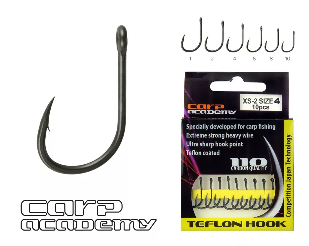Carp Academy Teflon Hook XS-2 Schwarz 4 10Stk./Packung Geöster Haken mit Widerhaken Boilie-Haken