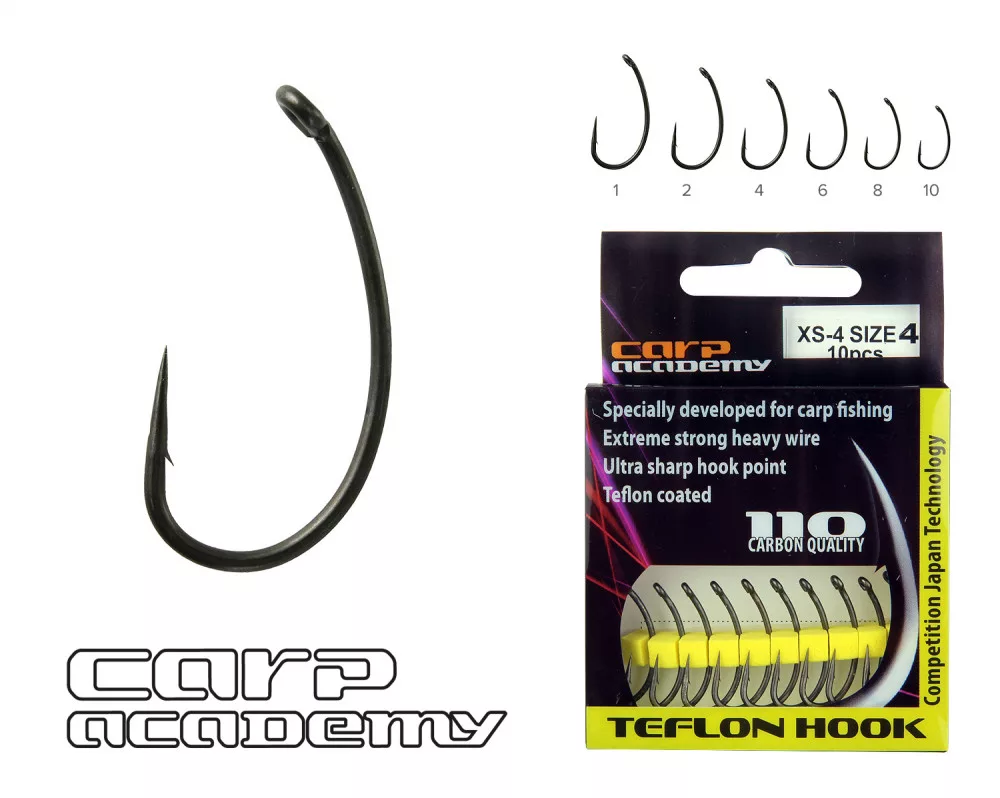Carp Academy Teflon Hook XS-4 Schwarz 4 10Stk/Packung Öhrhaken Widerhaken Boiliehaken