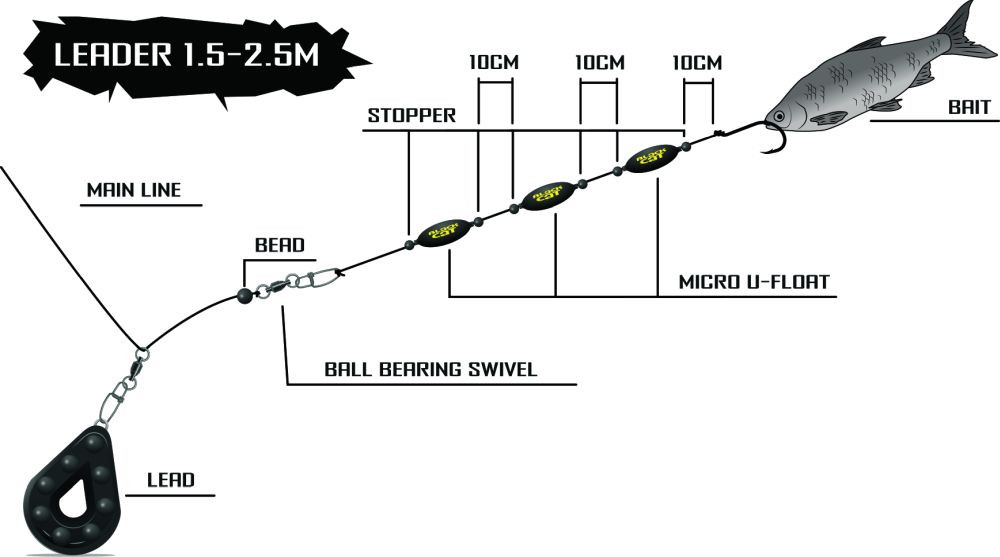 Der Köder wird mit Hilfe der Micro U-Floats nahe am Grund angeboten, je nach Gewicht können sogar mehrere Micro U-Floats am Vorfach befestigt werden, wodurch der Auftrieb erhöht wird, aber ohne unnötige Strömungen zu erzeugen. Laut Empfehlung von Stefan Seuß ist der Einsatz der Micro U-Floats zwischen scharfkantigen Steinen in Steinpackungen sehr vorteilhaft, um den Köder schwerelos über den Steinen schweben zu lassen. Die leuchtenden neon-gelben und neon-roten Farben werden in klarem Wasser eingesetzt, um die Aufmerksamkeit der Welse optisch zu erregen.