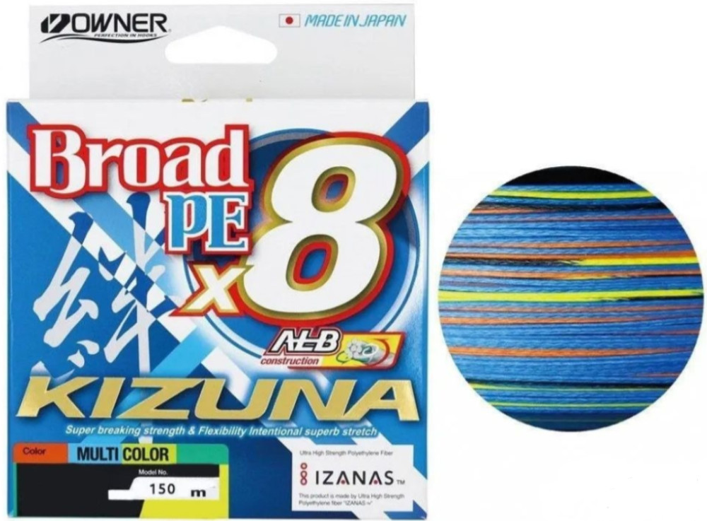OWNER Kizuna X8 Multicolor 150m 0,21mm Geflochtene Spinnangelschnur detaillierte Beschreibung