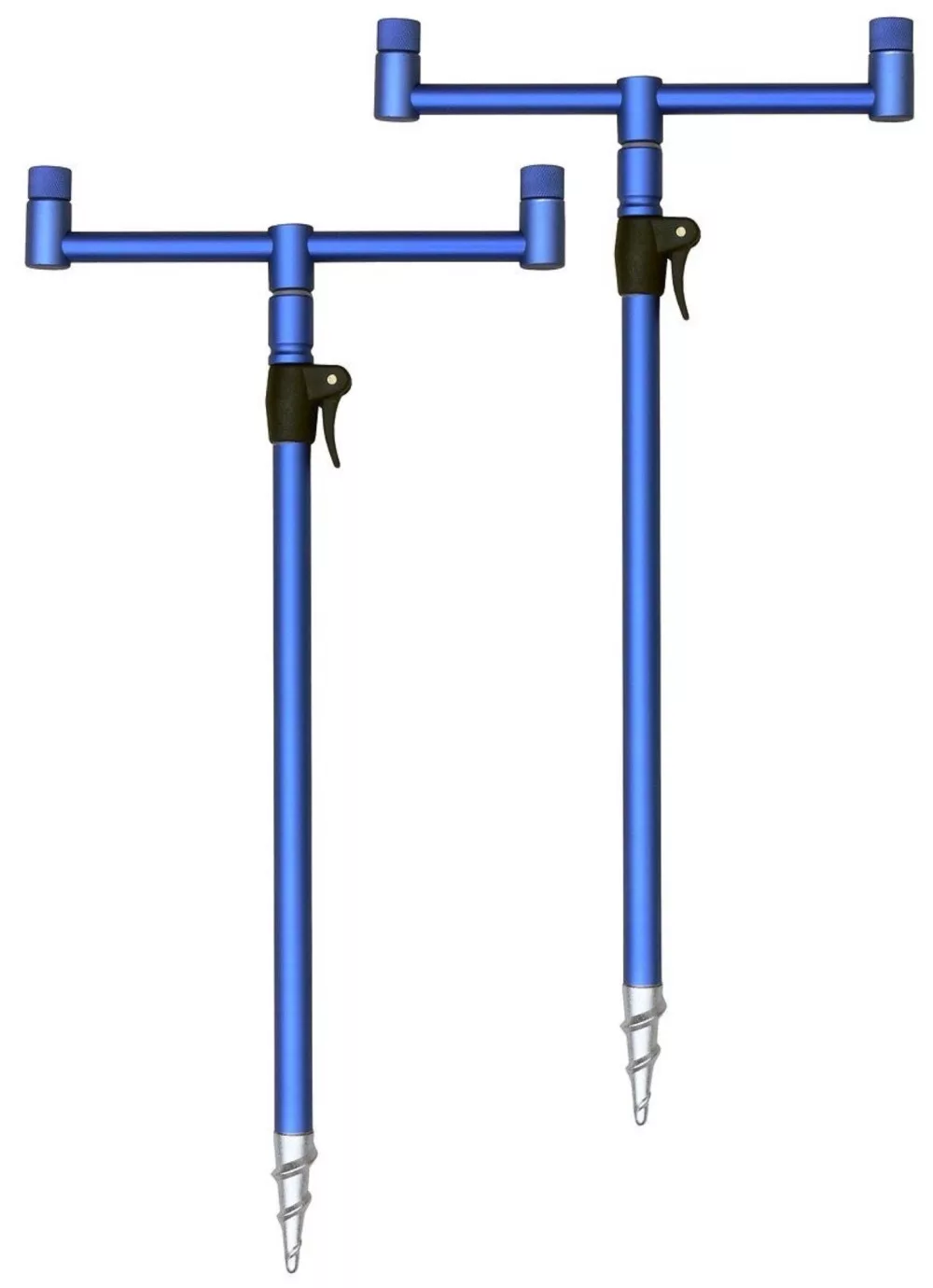 Wahrscheinlich das vielseitigste Zweiruten-Set auf dem Markt. Praktisch, leicht und kompakt. Dieses Set enthält 2 Stück 22 cm breite Buzz Bars und 2 Stück 40 cm Gewinde-Erdspieße. Da der Stiel teleskopisch ist, kann seine Länge natürlich verlängert werden, in diesem Fall sogar auf 60 cm. Der hochwertige Aluminium-Erdspieß hat eine metallblaue Oberfläche und eine extra starke Spitze, wodurch er leicht in den Boden geschraubt werden kann. Die schnelle und einfache Verstellbarkeit des Stiels wird durch einen Schnallenanschluss gewährleistet. An den Querstreben befindet sich eine Positionierungskonterschraube, mit der die Position der Rutenhalterköpfe praktisch und schnell eingestellt werden kann.
