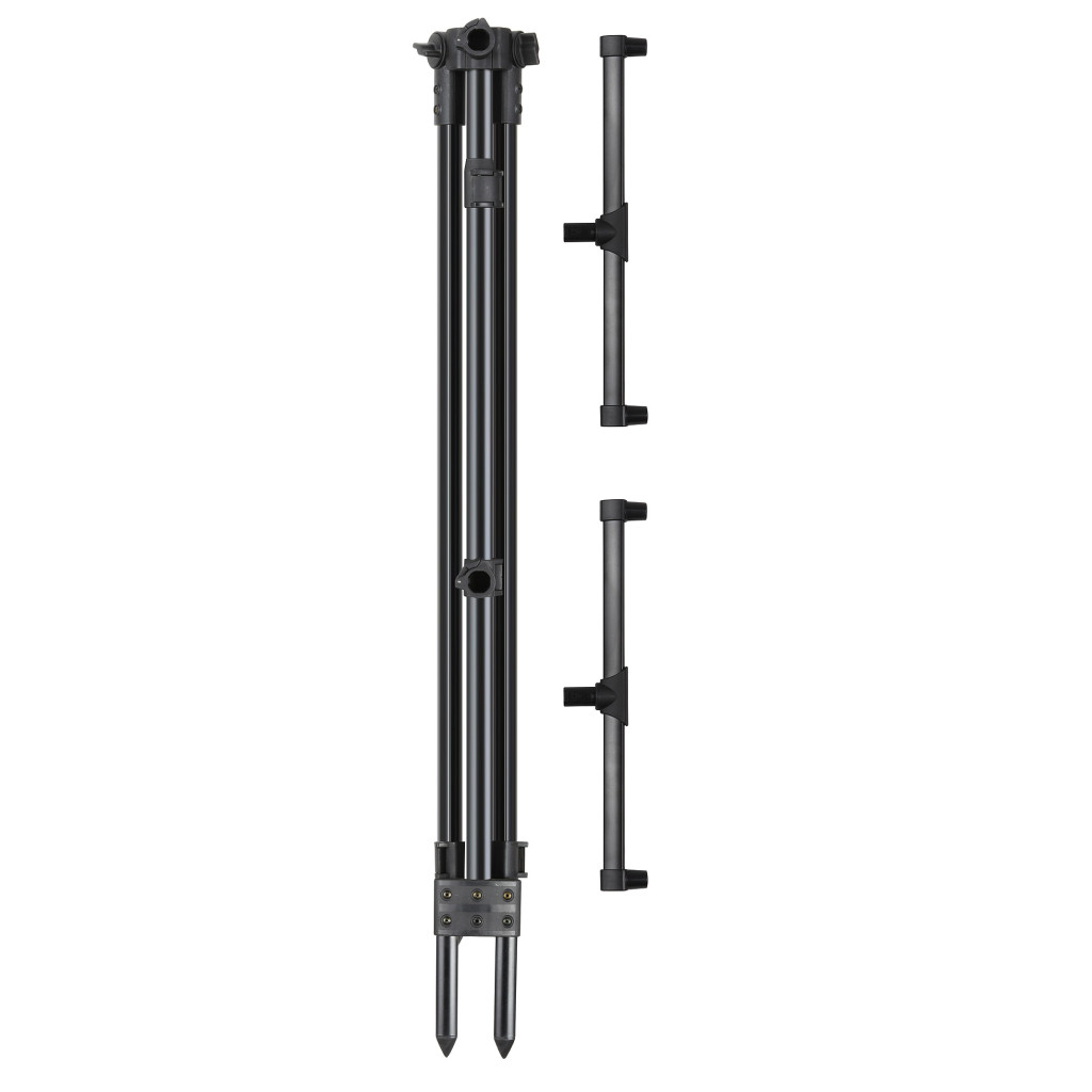 Die Beine sind weit ausziehbar und zwischen 100–180 cm verstellbar, sodass er auf nahezu jedem Ufertyp sicher aufgestellt werden kann. Der Winkel der Beine ist in einem weiten Bereich und in kleinen Schritten einstellbar, wodurch Unebenheiten im Gelände leicht ausgeglichen werden können. Die Querstrebe ist 40 cm breit, was ideal für die stabile Platzierung der Ruten ist. Der Rod Pod ist für 2 Ruten ausgelegt, sodass zwei Ruten gleichzeitig sicher verwendet werden können.