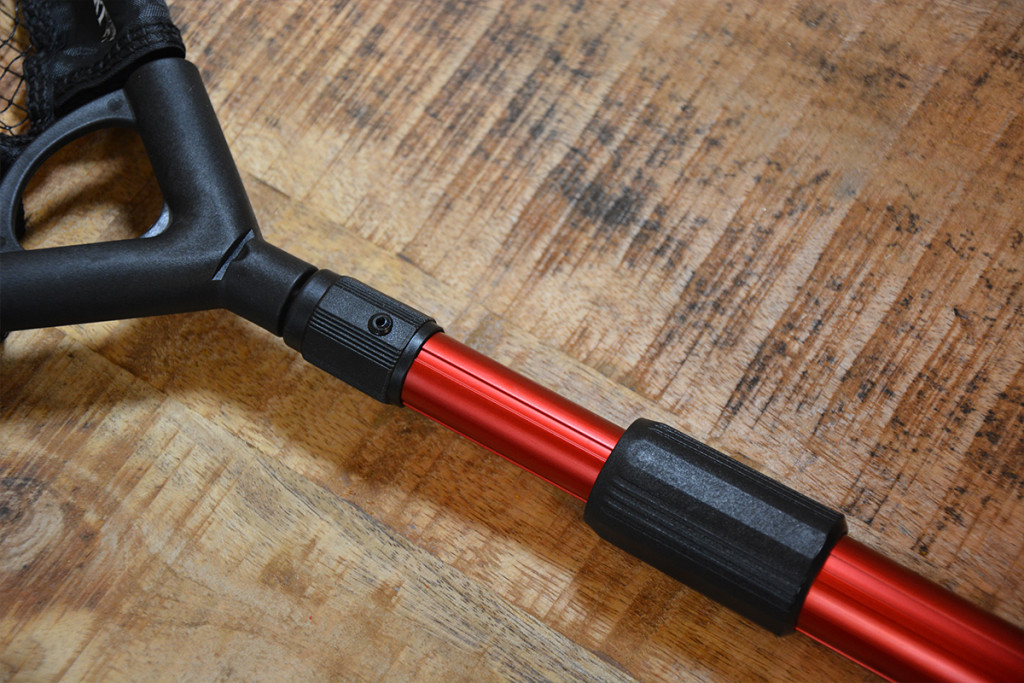Der robuste Metallstiel ist teleskopisch ausziehbar von 105 Zentimetern auf 180 Zentimeter, sodass wir bequem nach dem Fisch greifen können, falls das Ufer höher oder der Uferbereich zu flach ist. Am Ende befindet sich ein gummierter Griff, der einen rutschfesten Halt gewährleistet, sodass wir selbst die größten Planktonfresser sicher keschern können.
