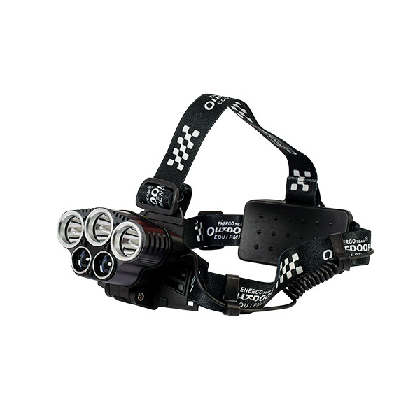 Die Pandora ist eine hochwertige Stirnlampe mit 5 LEDs, deren oberer Schalter 6 verschiedene Helligkeitsstufen einstellen kann. Ihre Helligkeit beträgt 500 Lumen. Ihr Material ist ABS + Aluminiumlegierung. Der Akkuplatz befindet sich ausnahmsweise nicht im vorderen Teil der Stirnlampe, sondern ist in einer hinteren Halterung untergebracht, mit einem separaten Eingang für das microUSB-Ladegerät bei diesem Modell.