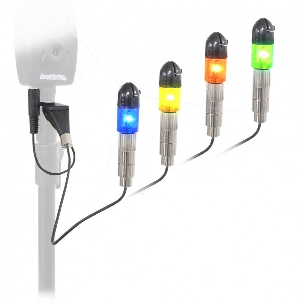Die maximale Effizienz von elektronischen Bissanzeigern erreichen wir durch den Einsatz von Swingern. Das auch „Schleichaffe“ genannte kleine Gerät sorgt unter allen Umständen für die Vorspannung unserer Schnur. Seine wichtigste Rolle ist es, die Schnur auch bei lockeren Bissen straff zu halten, sodass die durch die Rolle des Bissanzeigers laufende Schnur stets eine perfekte Verbindung für einen optimalen Betrieb gewährleistet. Die Gruppe erhielt ihren Namen, weil die Lichtanzeigeeinheit mit einer Kette, die ein entsprechendes Eigengewicht darstellt, mit dem Befestigungselement verbunden ist. Ein Klinkenstecker am Ende eines dünnen Kabels ist natürlich auch bei diesem Typ vorhanden, um Strom aufzunehmen und somit eine einwandfreie Nutzung in den dunklen Stunden zu gewährleisten.Die hochwertigen Carp Hunter Swinger sind mit LEDs in Blau, Gelb, Orange und Grün erhältlich.