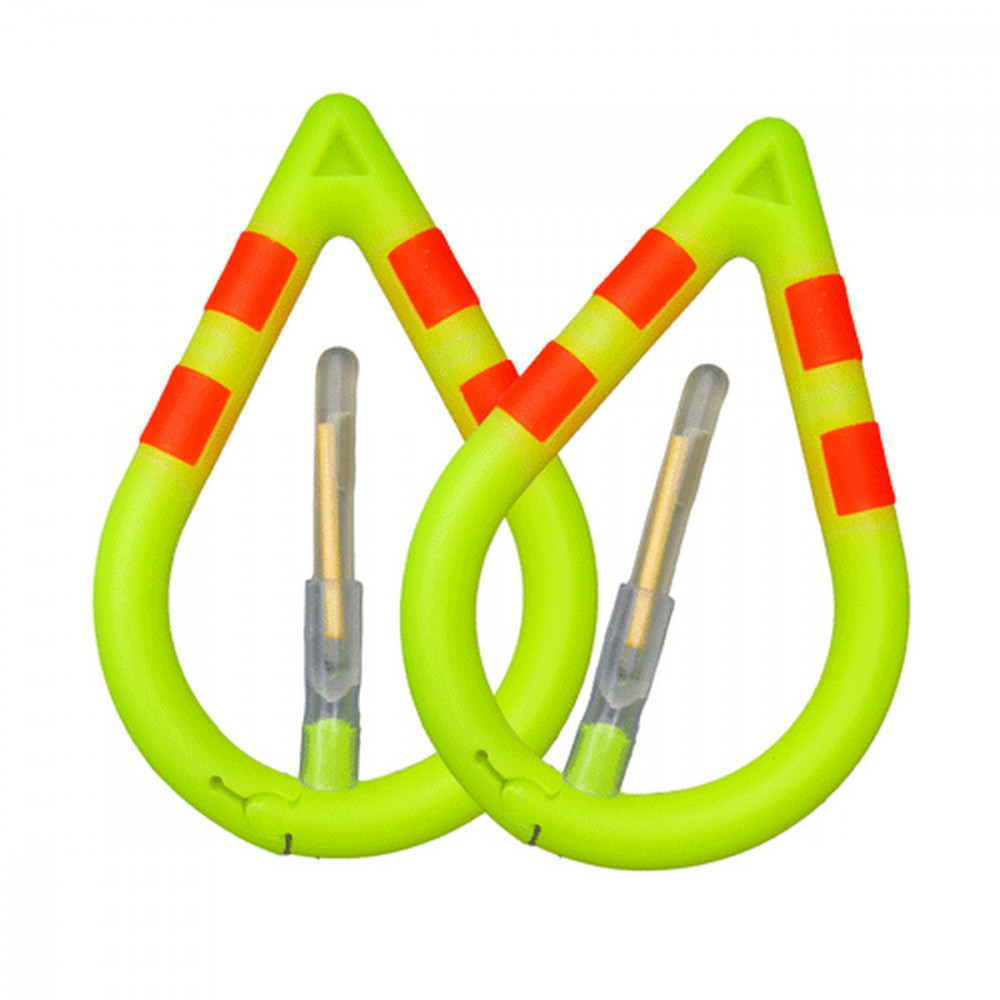 DROPS Bissanzeiger mit Leuchtpatrone (2 Stk.) - Ein Beutel enthält 2 Bissanzeiger derselben Farbe und 2 Leuchtpatronen. Tropfenförmiger Bissanzeiger, der am unteren Bogen mit einem flexiblen Schnappverschluss ausgestattet ist. Er lässt sich über diesen zu öffnenden Teil leicht an der Schnur anbringen und entfernen.