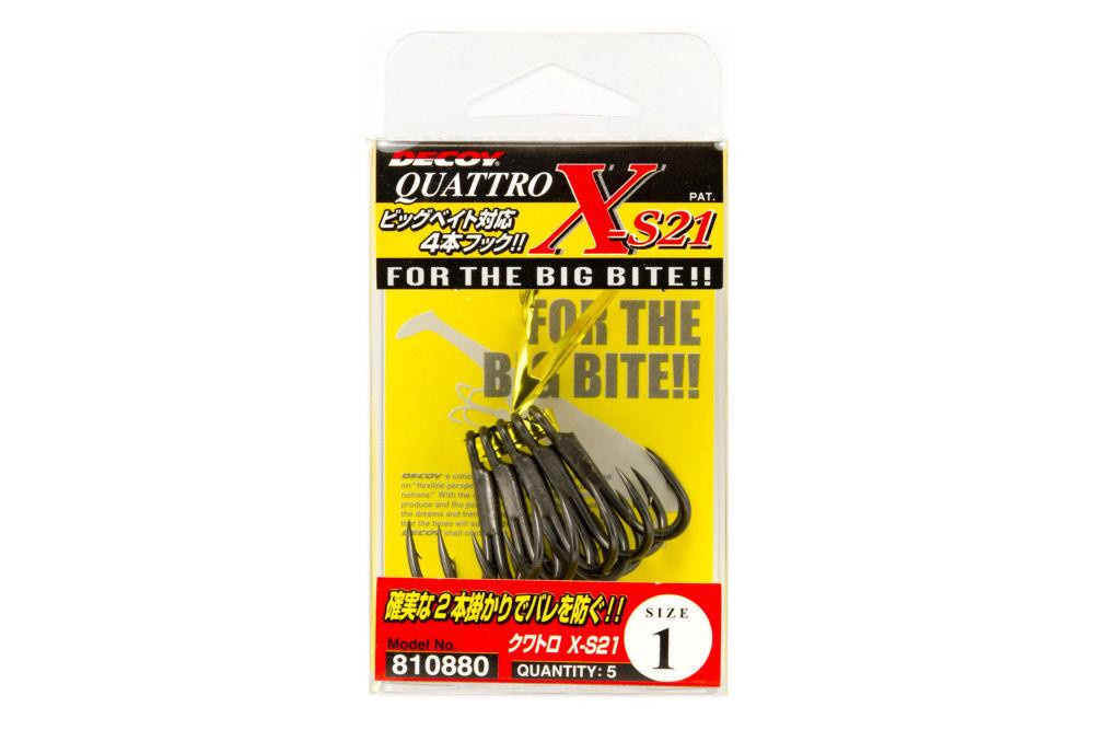 Bringen Sie Ihre Raubfischangeln auf ein höheres Niveau mit dem Decoy Quattro X-S21 Vierfachhaken! Dieser hochwertige, in Japan hergestellte Haken steht für Zuverlässigkeit und hervorragende Leistung und garantiert einen sicheren Anhieb und einen erfolgreichen Drill.
