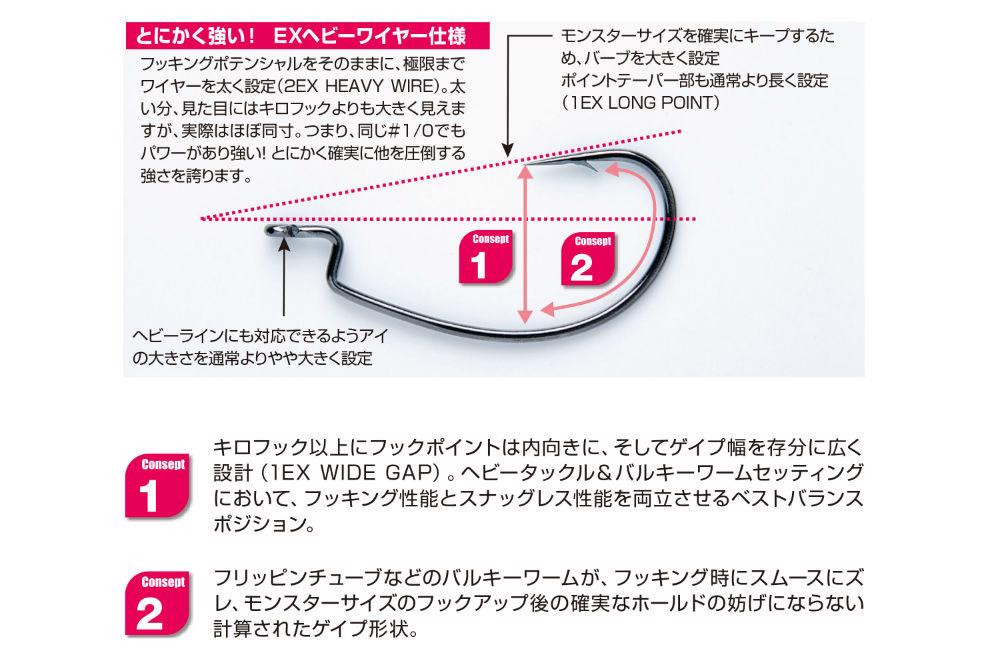 Das Offset-Design minimiert die Hängergefahr in dichter Vegetation oder zwischen Hindernissen, während es für einen perfekten Hakensitz sorgt, sobald der Fisch den Köder aufnimmt.