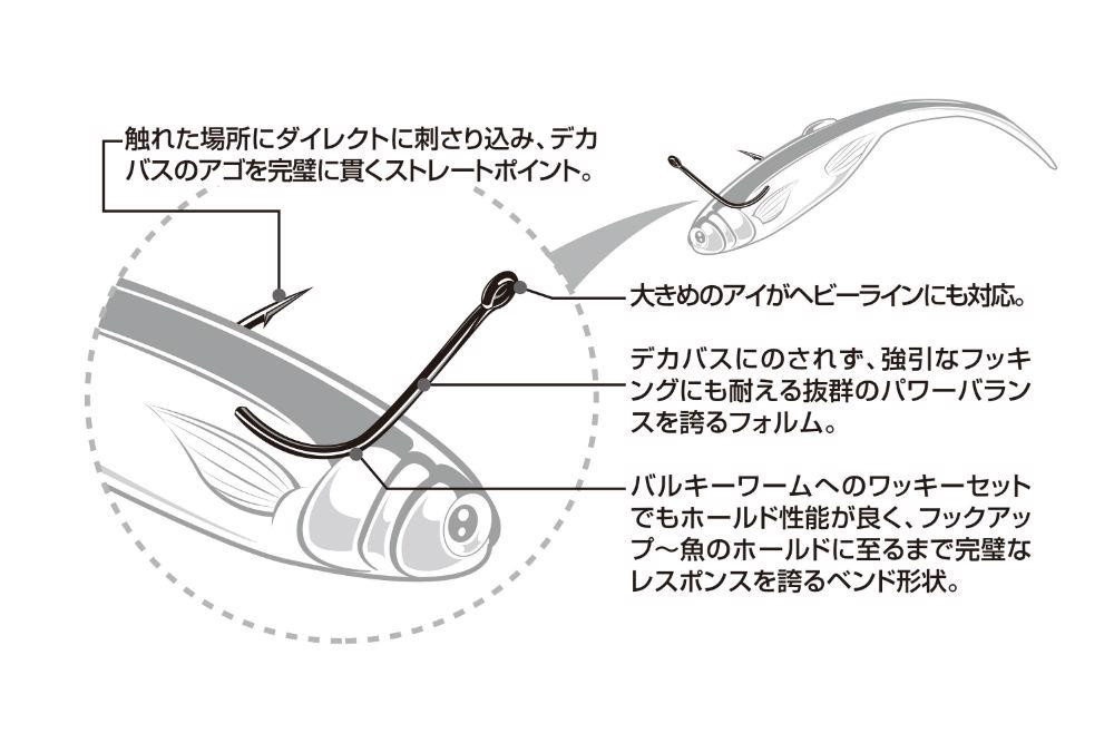 Der Decoy Worm 20 Big Bait Finesse Haken ist die perfekte Kombination aus japanischer Präzision und modernen Angelanforderungen. Er wurde speziell für die optimale Präsentation großer Softbaits, wie Gummifische, Plastikwürmer oder Krebsimitationen, für Finesse-Spinntechniken entwickelt.