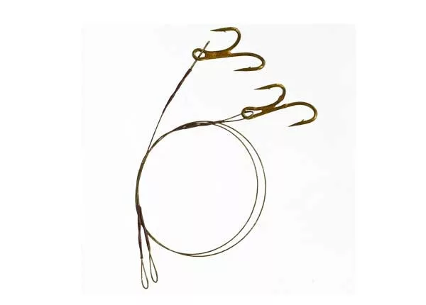 Die aus ausreichend weicher Wolframfaser gefertigten Vorfächer sind mit einem Drilling versehen, an dem kleine Fische, Fischstücke oder andere Köder platziert werden können.
