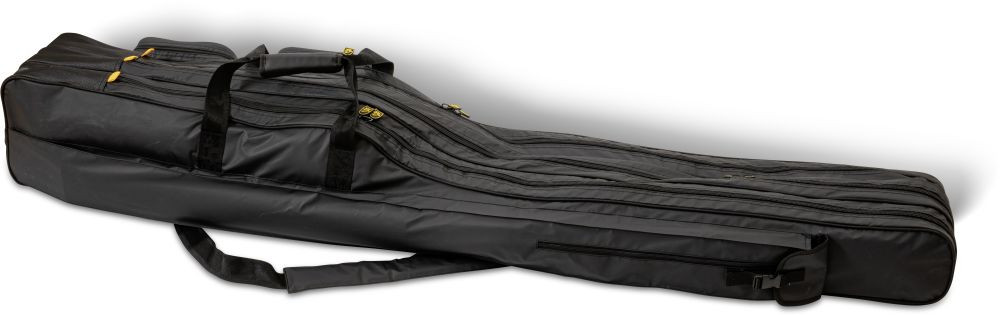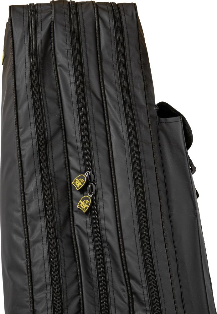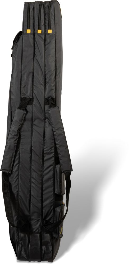 Robuste Rutentasche für bis zu drei montierte Welsruten mit viel Stauraum für Rollen. Die kleineren separaten Seitentaschen bieten eine perfekte Lösung zur Aufbewahrung von Handschuhen, Zubehör, Vorfächern und Haken. In der großen Seitentasche passen auch Banksticks samt Zubehör problemlos hinein und können transportiert werden. Die Tasche kann einfach wie ein Rucksack getragen werden.