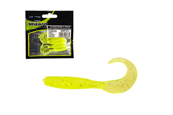 Inhalt des Pakets:Wizard Harpex Twist Fluo-Green 5cm Kunstköder 5 Stk.