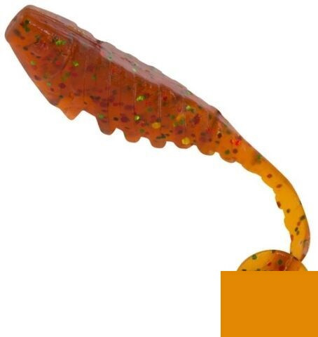 Es gibt zwei Arten von Rippen darauf, feine, nicht zu kräftige Rippen am Körper und auffälligere am Bauch, d.h. an der Unterseite. Die Form des Köders ist typisch für Shad-Gummiköder, der größere Körper ist fängig, wenn Raubfische ihre Bäuche mit breiteren Beutefischen füllen. Um die Bewegung zu perfektionieren, verjüngt sich der Köderkörper vor dem Schwanzteil, wodurch der Schwanz des Köders selbst bei der kleinsten Bewegung eine ziemlich intensive Bewegung aufnehmen kann.