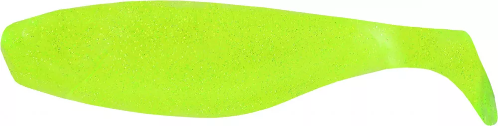 Ein Gummifisch in traditioneller Form, den der Hersteller mit einem überdurchschnittlich großen, scheibenförmigen Schwanz ausgestattet hat.