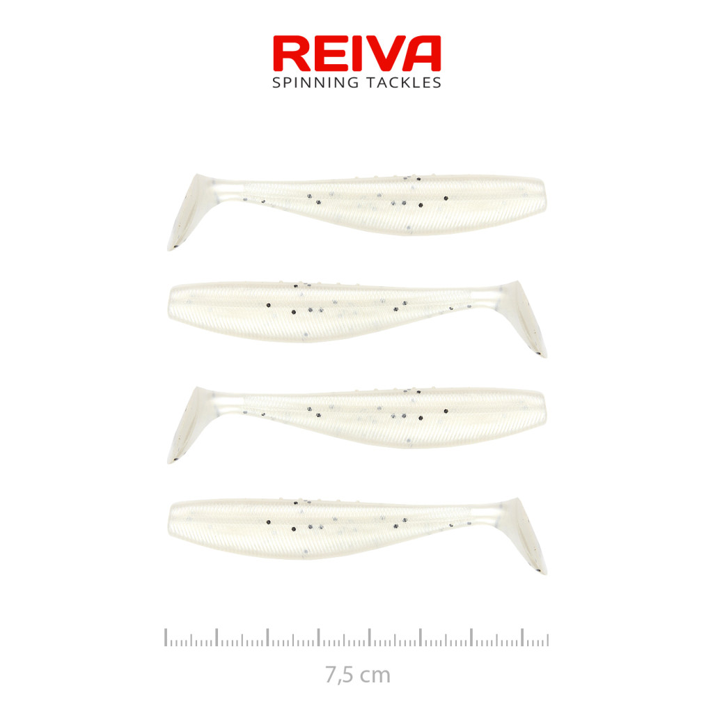 :Reiva Flat Minnow Shad 7,5cm Pearl Dot Plastikköder 4 Stk.