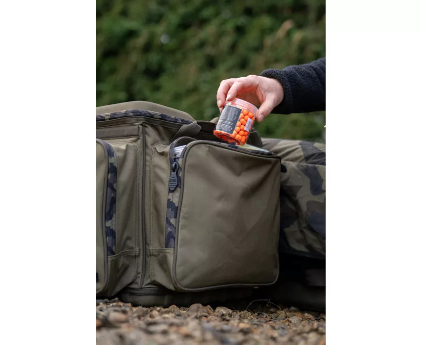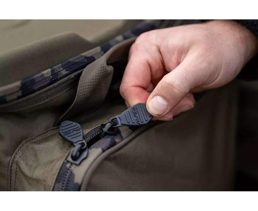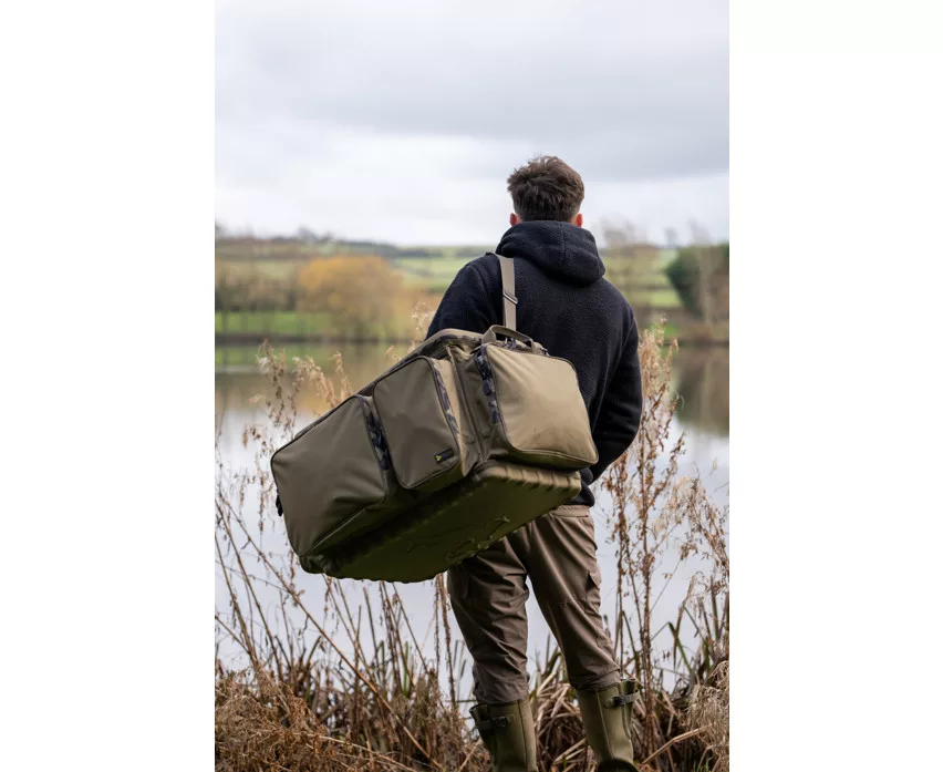 Deluxe Hardtop-Tasche, die für optimale Organisation konzipiert wurde. Leicht, mit interner Versteifung, um ihre Form zu behalten, selbst wenn sie nicht vollständig gepackt ist. Formgepresste EVA-Basis und -Deckel (der Deckel verfügt über eine integrierte Öffnung zur sicheren Aufbewahrung von Telefonen oder Tablets). Drei Außentaschen: eine große Fronttasche und zwei seitliche für leicht zugänglichen Stauraum. Abnehmbarer, gepolsterter Schultergurt für bequemen Transport. Seitliche Griffe zum problemlosen Auf- und Abladen auf eine Angelkarre. Hergestellt aus strapazierfähigem, wasserabweisendem 600D Oxford-Gewebe mit hochbelastbaren 10-mm-Reißverschlüssen und Avid Camo-Details.