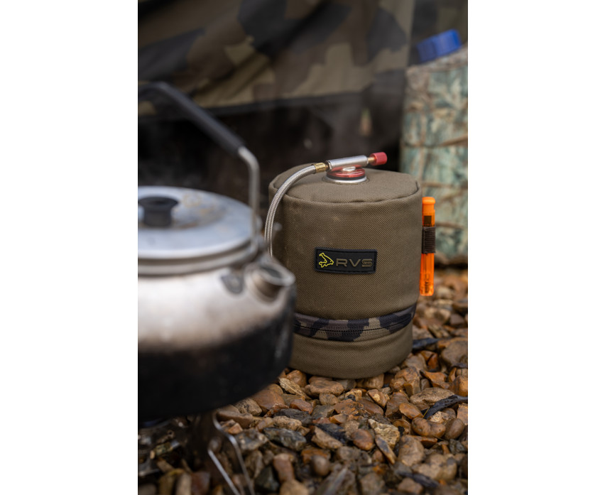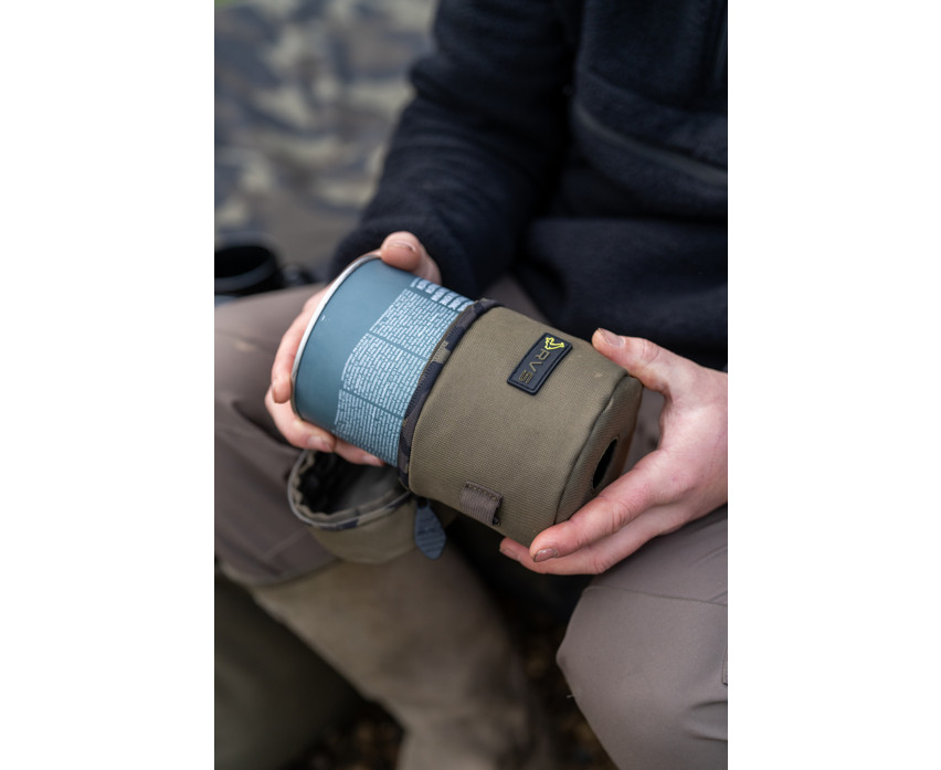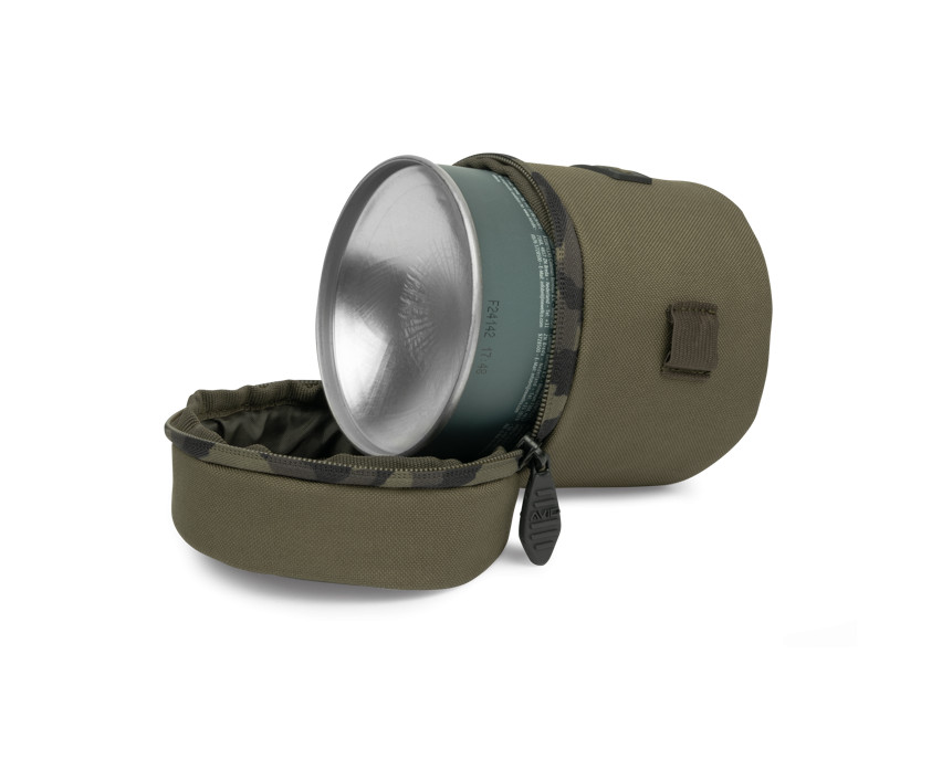 Isolierter Gaskartuschenhalter, entwickelt für Gaskartuschen der Größe „500“, der die Leistung durch Warmhalten erhöht. Enthält eine elastische Schlaufe für einen Teelöffel und ein Feuerzeug, sodass die wichtigsten Dinge leicht zugänglich bleiben. Hergestellt aus strapazierfähigem, wasserabweisendem 600D Oxford-Gewebe mit hochbelastbaren 10mm Reißverschlüssen und Avid Camo-Details.