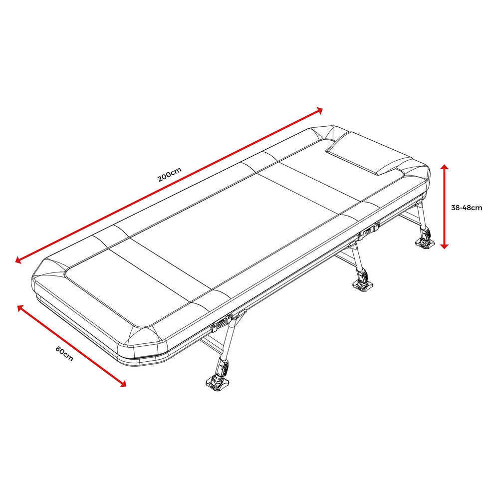 Die Matratze ist aus luxuriösem Memory-Schaumstoff gefertigt, der sich hervorragend an die Körperform anpasst und maximalen Komfort gewährleistet. Die Oberseite besteht aus wasserdichtem, strapazierfähigem Material, das eine lange Lebensdauer und zusätzlichen Schutz für die Liege bietet. Die Liege verfügt über 6 Standardbeine, die einen stabilen Halt gewährleisten. Das Beinsystem ist speziell konzipiert, um die Liegefläche auszugleichen und die Liege stabil zu halten. Die Beine der Liege sind verstellbar, sodass sie auch auf unebenem Gelände in eine horizontale Position gebracht werden kann. Durch die Integration größerer Federn und ein weiterentwickeltes Schienendesign wurde das stärkste und am einfachsten zu handhabende Beinsystem auf dem Markt geschaffen.