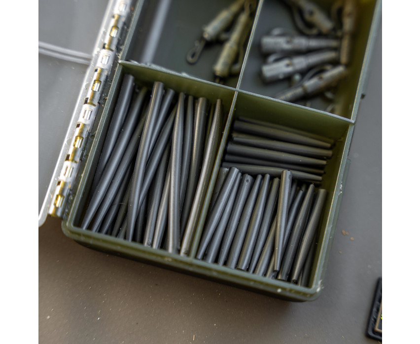 Die Hülsen passen ideal über QC (Quick Change) Wirbel, wo sie die Elemente der Montage stabil fixieren und die Möglichkeit von Verwicklungen minimieren. Die Wolframfüllung verleiht der Montage nicht nur Gewicht, sondern hilft auch dabei, dass sie auf natürliche Weise auf dem Gewässergrund liegt, um die Argwohn der Fische zu vermeiden. Das längere 50 mm Design ist besonders vorteilhaft bei Montagen, bei denen die Wurfgenauigkeit und die gerade Führung der Montage extrem wichtig sind.