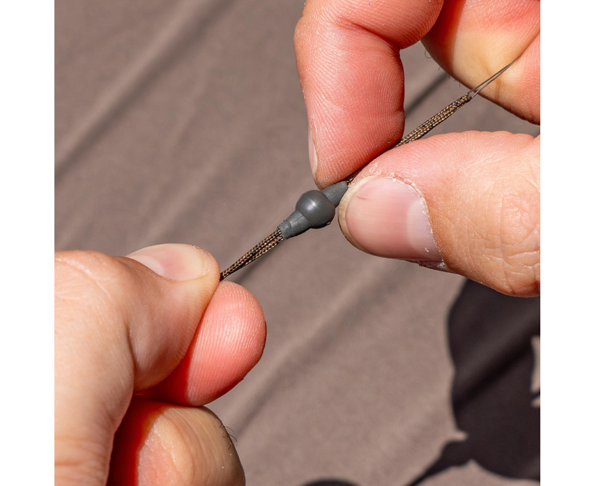 Die Perlen und Muffen sind auf einem einzigartigen Rahmen mit verstärkten Metalldrähten angeordnet, was die Befestigung am Vorfachmaterial erleichtert. Die Montage wurde so konzipiert, dass die konische Perle im Falle eines Abrisses auch unter Druck von der Hülse abrutschen kann, um den Fisch zu schützen. Bei der Verwendung wird empfohlen, die Perle leicht anzufeuchten und einen Wirbel zu verwenden, der frei durch die konische Hülse gleitet.